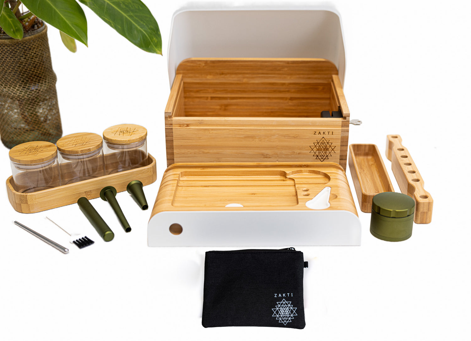 Introducing the Zakti Journey Storage Box, an epitome of sophistication crafted from premium, eco-friendly bamboo paired with high-grade aluminum. Elevate your storage experience with a meticulously designed ensemble that includes many tools for your process