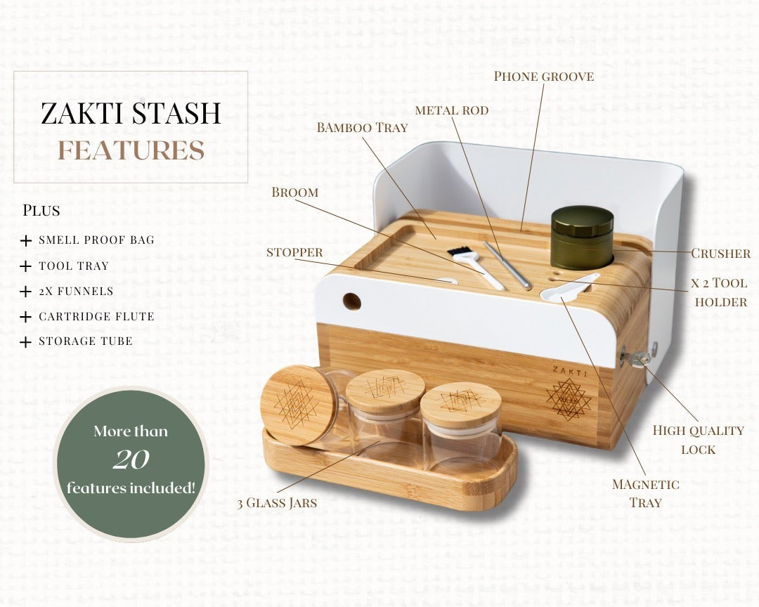 Elevate your storage rituals with the Zakti Stash Box – a harmonious fusion of style, security, and functionality.